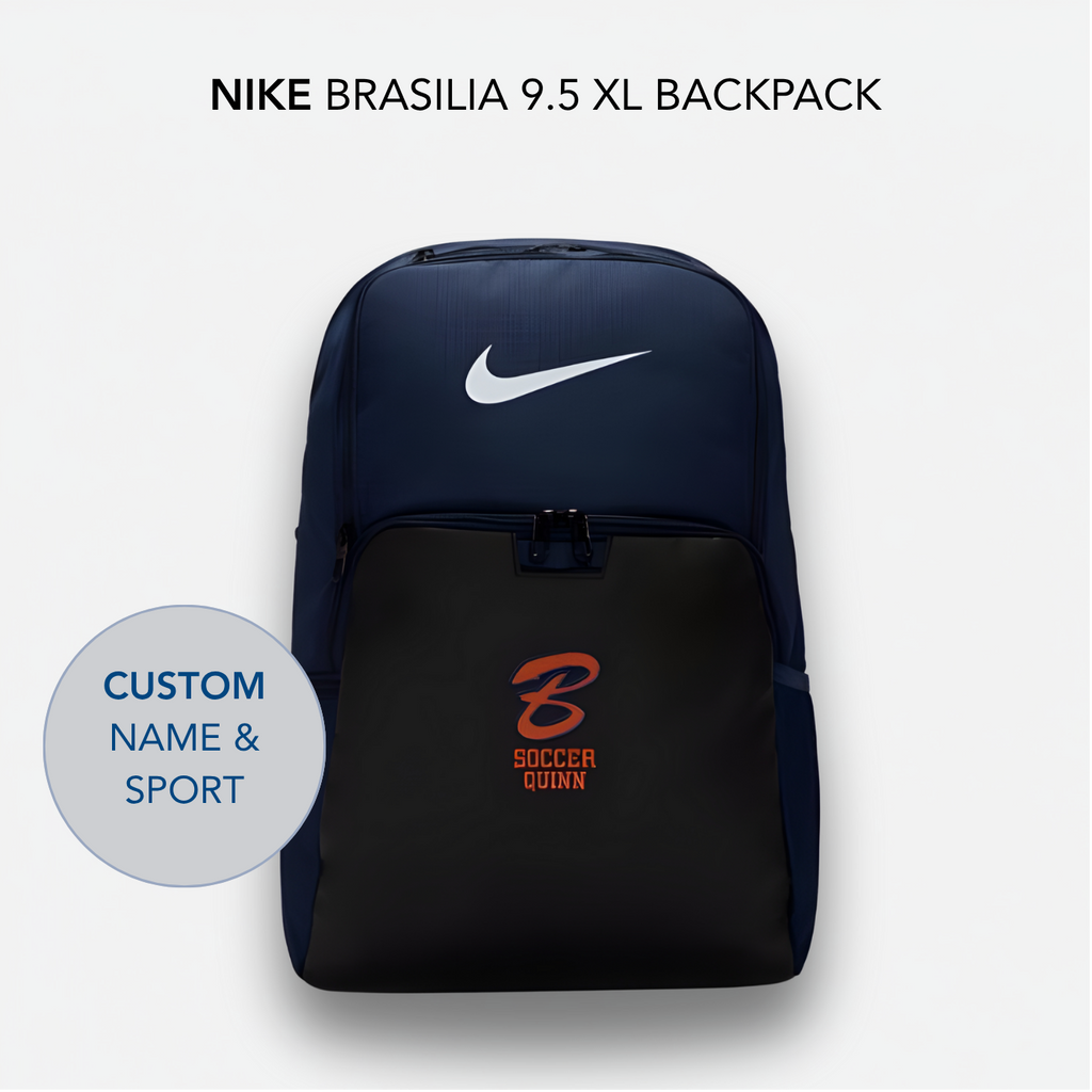 Nike Brasilia 9.5 XL Backpack Zippered main compartment offers secure storage. Densely woven polyester stands up to the bumps and scrapes of everyday transport. Ventilated zip pocket on the front stores used gear away from your other things. Internal laptop sleeve with organization panel helps keep your computer separate. Padded, adjustable shoulder straps help you carry the pack comfortably. Side pockets make it easy to grab water bottles and other items... 100% POLYESTER.